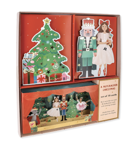 Send winter cheer with our Nutcracker boxed cards! Each box contains four of each die-cut card and two of each shadowbox cards, for a total of ten cards.